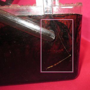 one small crack on the back. 1950s brown tortoise shell marbled lucite clear plastic box purse see through rockabilly rectangular box dark medium cute plastic vegan mid century acrylic cute kawaii 50s pocketbook cottagecore party clutch