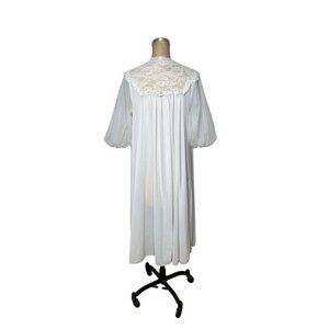 1950s white robe with lace yoke and sheer puffed sleeves by Vanity Fair Size S/M
