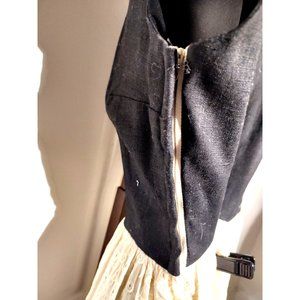 1950s-60s Homemade Black & Cream Linen Eyelet dress.