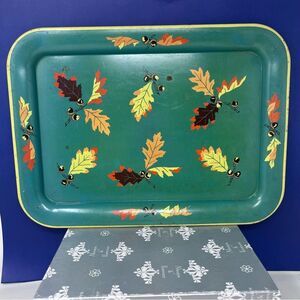 1950’s Aluminum Metal Serving Tray Autumn leaves