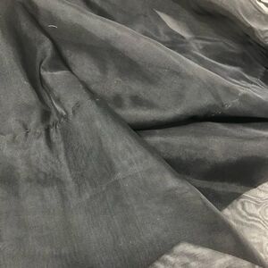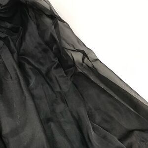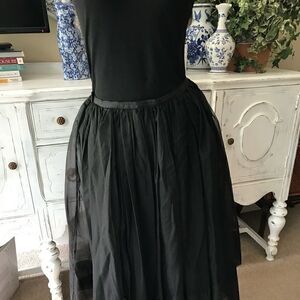 This handmade skirt is adorable. The skirt looks gray in the pictures because of the lighting, it’s actually pure black. Has a zipper on the side, top skirt is like poly sheer taffeta very soft. The inside skirt is poly satin. It will look great with a denim or white shirt. In great vintage condition. 28” waist and 28” length.