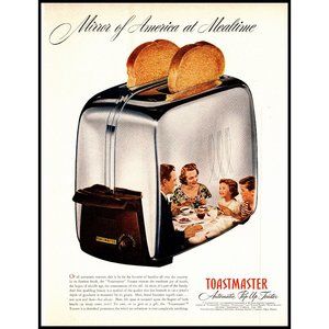 1951 Toastmaster Automatic Toaster Vintage Print Ad Family Breakfast MCM Wall Art