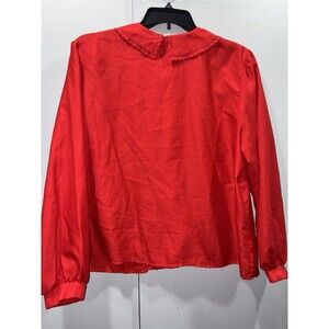 1951 Vintage Romantic Red Blouse Peter Pan Collar Embroidered Bow USA Women’s L