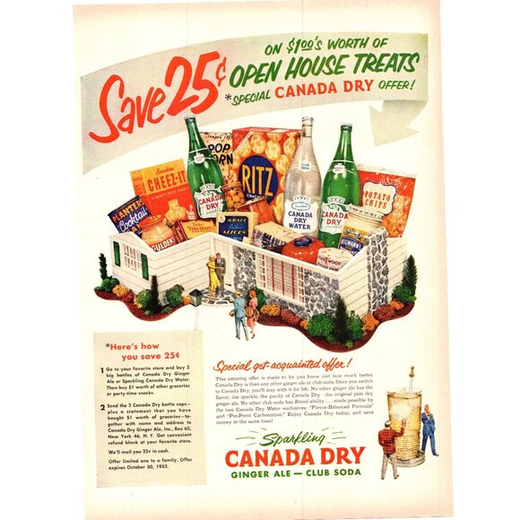 1952 Canada Dry Ginger Ale Club Soda Vintage Print Ad Open House 50s Wall Art