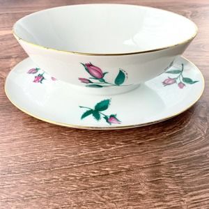 1952 Easterling Bavaria Radiance - Pink Roses Gold Trim - Gravy Boat w Plate