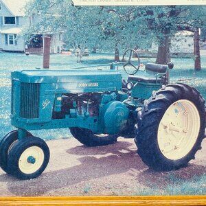 This framed print showcases the iconic 1952 John Deere 60 tractor, offering a nostalgic glimpse into agricultural history. The oak wood frame adds a classic touch.