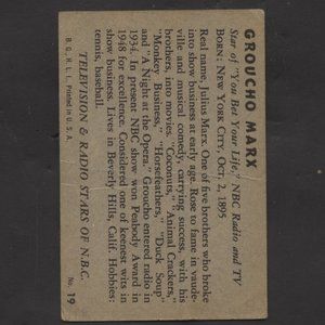 1953 BOWMAN TELEVISION AND RADIO STARS GROUCHO MARX CARD