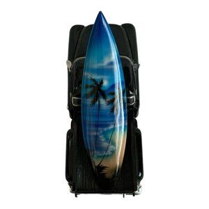 This 1955 Chevy Stepside die-cast pickup truck features a sleek black finish and comes with a colorful surfboard accessory, making it a standout collectible for both truck and surf enthusiasts. The model captures the vintage charm of the classic Chevy Stepside with fine detailing, durable die-cast construction, and smooth rolling wheels. The surfboard adds a fun coastal vibe, enhancing its display appeal and collectible value. Rare and in excellent condition, this model is perfect for collectors, Chevy fans, or as a unique gift that blends American truck heritage with beach culture.