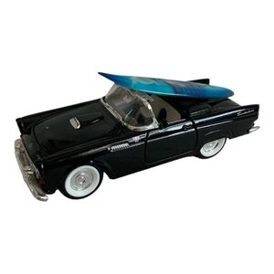 ford thunderbird, 1955 ford, diecast car, black model car, dolphins surfboard, rare collectible, classic car model, vintage diecast, ford collectible, toy car, automobile collectible, surfboard model
