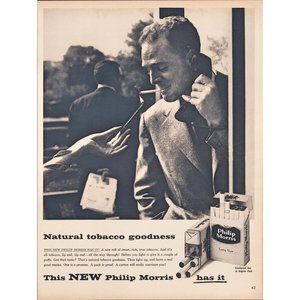 1956 Philip Morris Cigarettes Vintage Print Ad Phone Booth Business Suit Art 50s