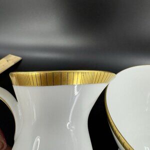 1956 Rosenthal Porcelain Sugar And Creamer Set White Gold Black Lines Vintage