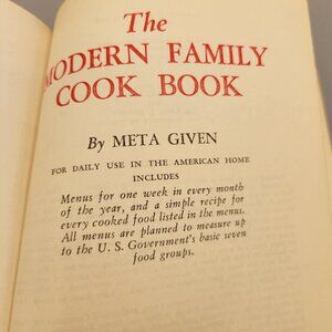 The Modern Family Cook Book published in 1958, first printing. Untrimmed pages. Illustrations, Tables and Index included. 632 pages.