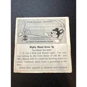 Vintage 1958 View-Master 3-reel set Mighty Mouse Meets Powerful Puss.