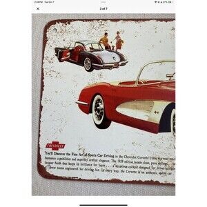 1959 Chevrolet CORVETTE 10” x 7” Purposefully Distressed Metal Sign Man Cave