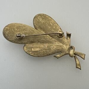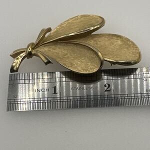 This is a classic looking brooch done in a brushed gold-tone finish.