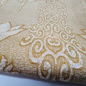 1960s 70s Gold Textured Polyester Upholstery Fabric Tulips 48" W 2yds 12" VTG