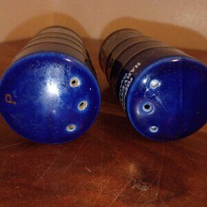If you grew up in the Midwest or the Heartland, as they call it, like I did--the sight of the big Blue Harvestore silos dotting the countryside was common, yet always kind of awe inspiring. Farmers loved to display their towering bright blue grain silos and we loved seeing them. These salt and pepper shakers are a throwback to those memories and were made in the 1960s, possibly mid to late 1950s. They are in nearly perfect condition...I say nearly only because they are not new (of course) so perfect is not a qualifier. But I found no chips, cracks, flea bites or damage of any kind. The red plastic plugs are intact in the bottom. They look to have been for display only and never used. Rare and hard-to-find, ready for a new home whether on the table or in a cabinet.