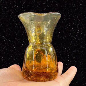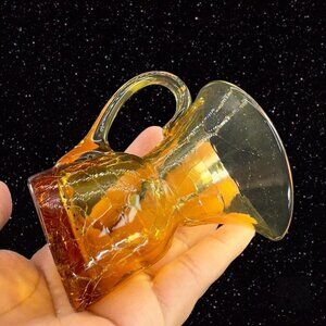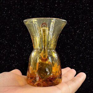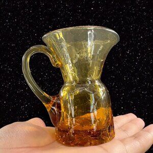 1960s Amber Crackled Glass Small Pitcher Creamer Art Glass Hand Blown Glass VTG