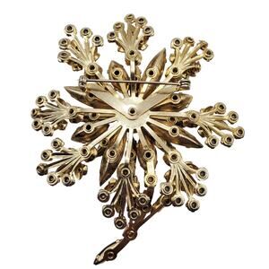 1960s Amber Rhinestone Flower Brooch Oversized Gold Tone Retro Statement AB MCM