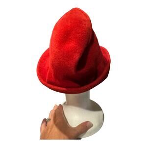 1960's American Vintage Emme Boutique Red Wool Hat, Feathers, fold over size S-M
