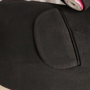 Jacket has silver single breasted buttons and two pockets. The pants have a front zipper.