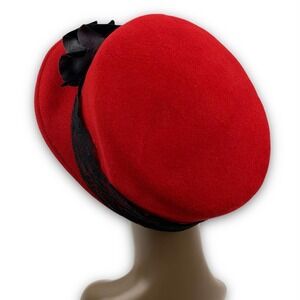 1960's BOLLMAN HAT Co. via KOKIN red wool black rose and lace cap