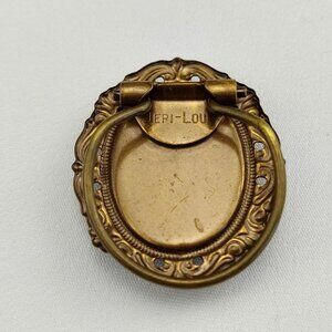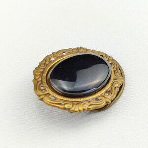 Gold tone metal frames the oval black glass in this scarf clip by Jeri Lou