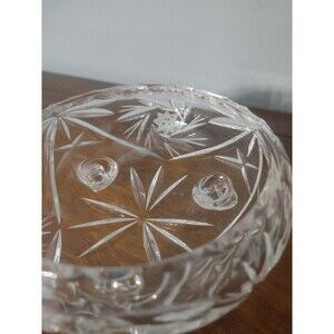 1960s Bohemian Czechoslovakia Hand Cut Heavy Lead Crystal Footed Bowl 4.25"