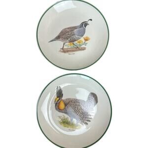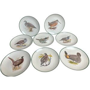 1960s Centura Game Bird Green Trim Salad Plates Set of 8 -8"