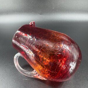 1960s Crackle Glass Small Pitcher Creamer Amberina UV Glowing Glass Clear Handle