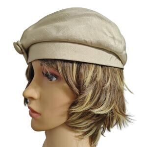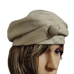 1960s Cream Pillbox Hat Cream Button Adornment Banded Edge Gently Used