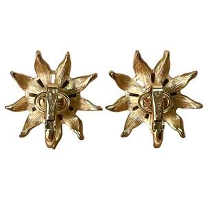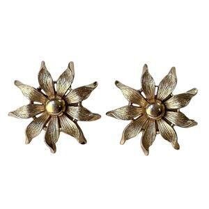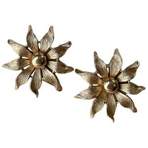 1960s Crown Trifari Gold Plated Vintage Flower Floral Feminine Clip Earrings