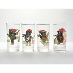 1960s Culver 4 Christmas Holiday Teddy Bear Highball Tumbler Glasses 5 1/2” 12oz