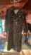 Designer (Debbie Robert) coat gorgeous faux fur (textured), chocolate brown with silver and brown buttons down front and at back (missing one button at front). I’d remove ones from back to use but I’ll leave that for buyer to decide. Right pockets lining has come undone needs a repair if you want to use. Left pocket need repair as well some stitching at top where slit for pocket is.
