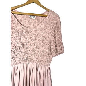 1960s Dress Pink 6P Pleat Skirt Scrunch Bodice Cottagecore Delicate Romantic Vtg