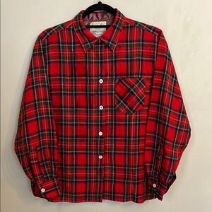 1960s Game and Lake Red Loop Button Up Shirt Buffalo Plaid 100% Wool