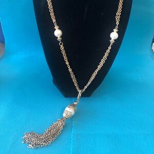 1960's Goldtone Tassel and Faux Pearl Necklace