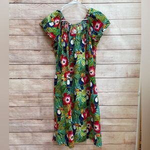 1960s HAWAIIAN MUMU AUTHENTIC VINTAGE TROPICAL PARROT PRINT PERFECT FUN
