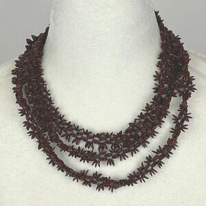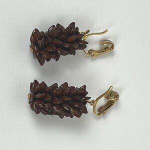 1960s Hawaiian Vintage Brown Koa Appleseed Necklace & Clip Earrings. Earrings have gold-tone clips.