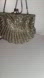 Vintage 1960s small silver colored beaded evening, clamshell shaped retro shoulder strap handbag. The size is 6" wide X 6" tall X 2" deep. This is a true gem in really good condition. The inside is white satin with a side pocket. The chain falls down inside of it, you can use it with or without the chain. Good for a Bridal party, Bride or bridesmaid. It has a cute stainless kiss. Lock on top. Art deco looking, preowned.