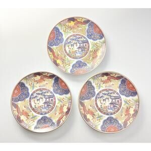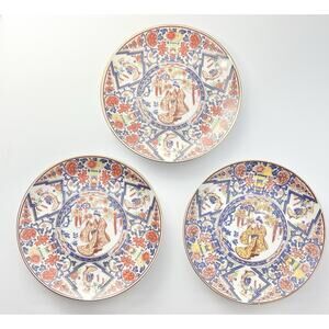 1960s Japanese Imari Oriental Floral Porcelain Bread or Dessert Plates 6 3/8”