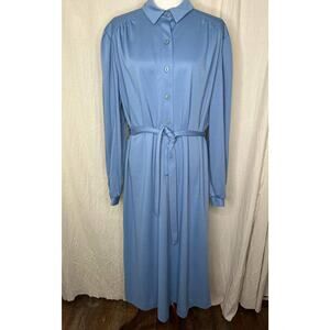 1960s Jerrie Lurie Dusty Blue Mod Secretary Coquette Modest Volup Dress 2XL