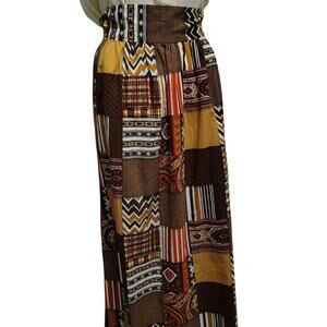 Vintage 1960s Handmade Vintage Light Weight Patchwork Printed Fabric Zipped Maxi Skirt 12.5 Inch Waist Size XXS