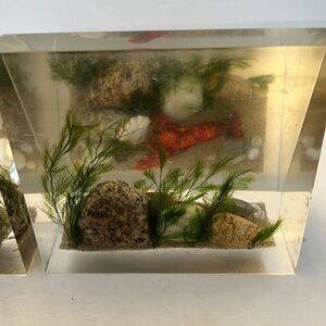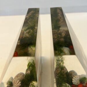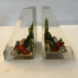 Here is such an unusual set of vintage acrylic bookends By the company Clear Float TM it has an Ocean Scene with Lobsters, sand, seaweed and shells. These are old not the modern day ones and as such as some very light service scratches and are not as clear as the ones they make today. They are works of art!