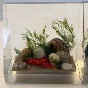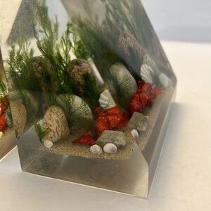 1960s Lucite Book Ends Clear Float TM Ocean Scene Lobsters