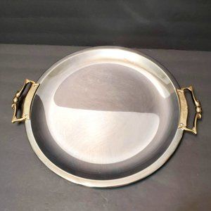 Beautiful Metal Bar Martini Serving Tray, Chrome with Gold Tone Handles. Stunning Mod MCM design! Marked "Kromex, Made in USA" under the handles. This circular tray is ideal for serving Martinis or other cocktails, or use it as a catch-all tray on your coffee table! It has wonderful gold deco accent handles. Nice and large, it measures 16 inches across. In excellent vintage condition, it does have a few small scratches from use, but overall it still looks stunning for its age!
