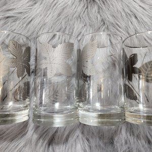 1960's Mid Century Modern Glassware Silver Foliage Highball Tumblers
