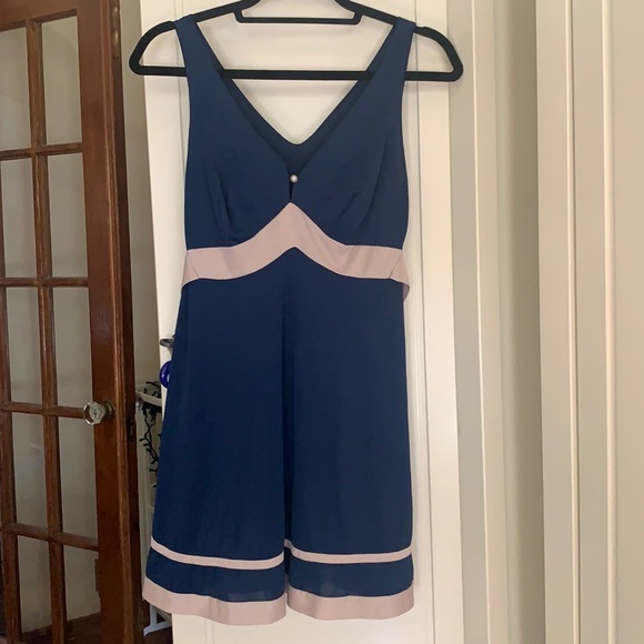 Navy blue & Taupe Fabric 100% nylon. Original Pearl button accent in front. Size S By Shadow Line.