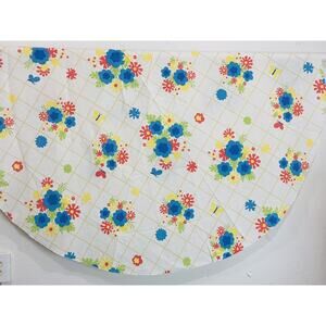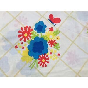 1960s Mod Retro Flower Power Table cloth Round Butterfly Blue Red Yellow Cheerful