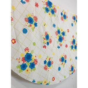 1960s Mod Retro Flower Power Table cloth Round Butterfly Blue Red Yellow 68" Che